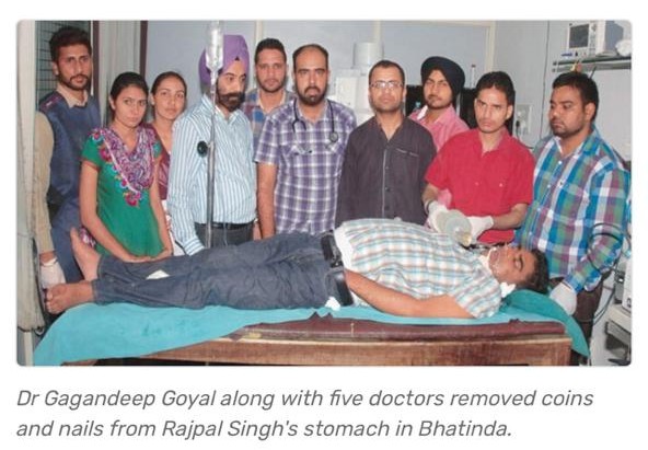 Dr. Gagandeep Goyal, a skilled gastroenterologist from Bathinda, Punjab, India, has set a remarkable world record by performing the most foreign body removals endoscopically from a single patient without surgery. In a highly challenging medical procedure at R Gagan Gastro Care, Bathinda, he successfully extracted more than 400 coins and multiple metal nails from the stomach of a distressed farmer who had swallowed them over time due to severe psychological stress. Through exceptional precision and medical expertise, Dr. Goyal ensured the patient’s safety and recovery. This extraordinary achievement demonstrates innovation, courage, and excellence in life-saving endoscopic treatment- a true milestone in healthcare.